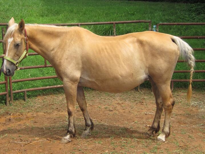 Along with a few other palominos, Amber came to H.E.R.O. thin, neglected, and pregnant! She gave birth to a healthy palomino foal a few weeks later. His handsome father, Hamlet, and his young sister, Cressida, have also been adopted.These are very sweet, sound horses who are now enjoying different jobs with their riders. We are thrilled to see them in homes where they are appreciated.